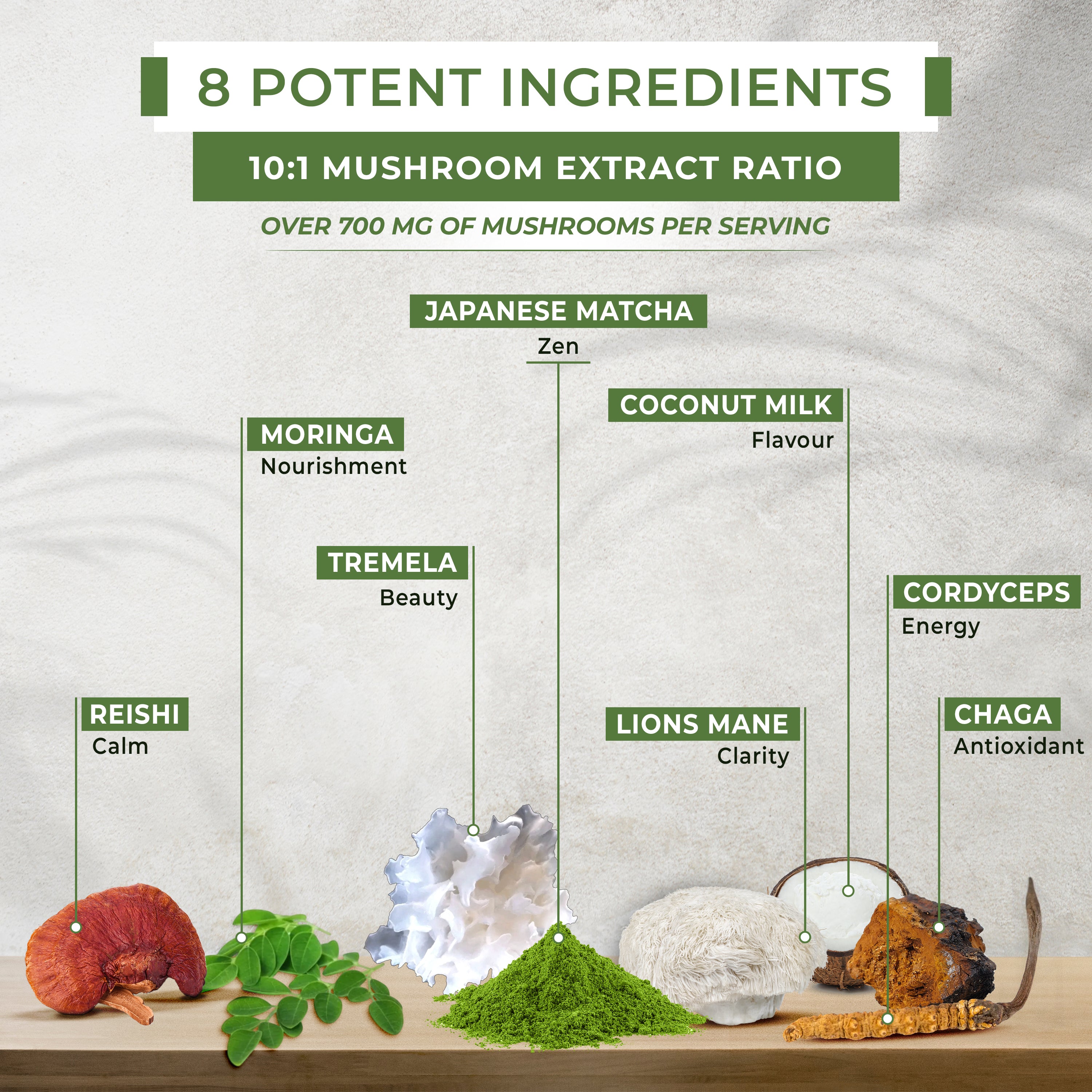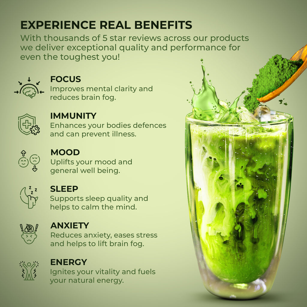 Unleash the power of super lattes infused with matcha, moringa, coconut milk and mushrooms —see results in as little as 7 days with focus, vitality, and a radiant glow, all in an unbelievably delicious taste.