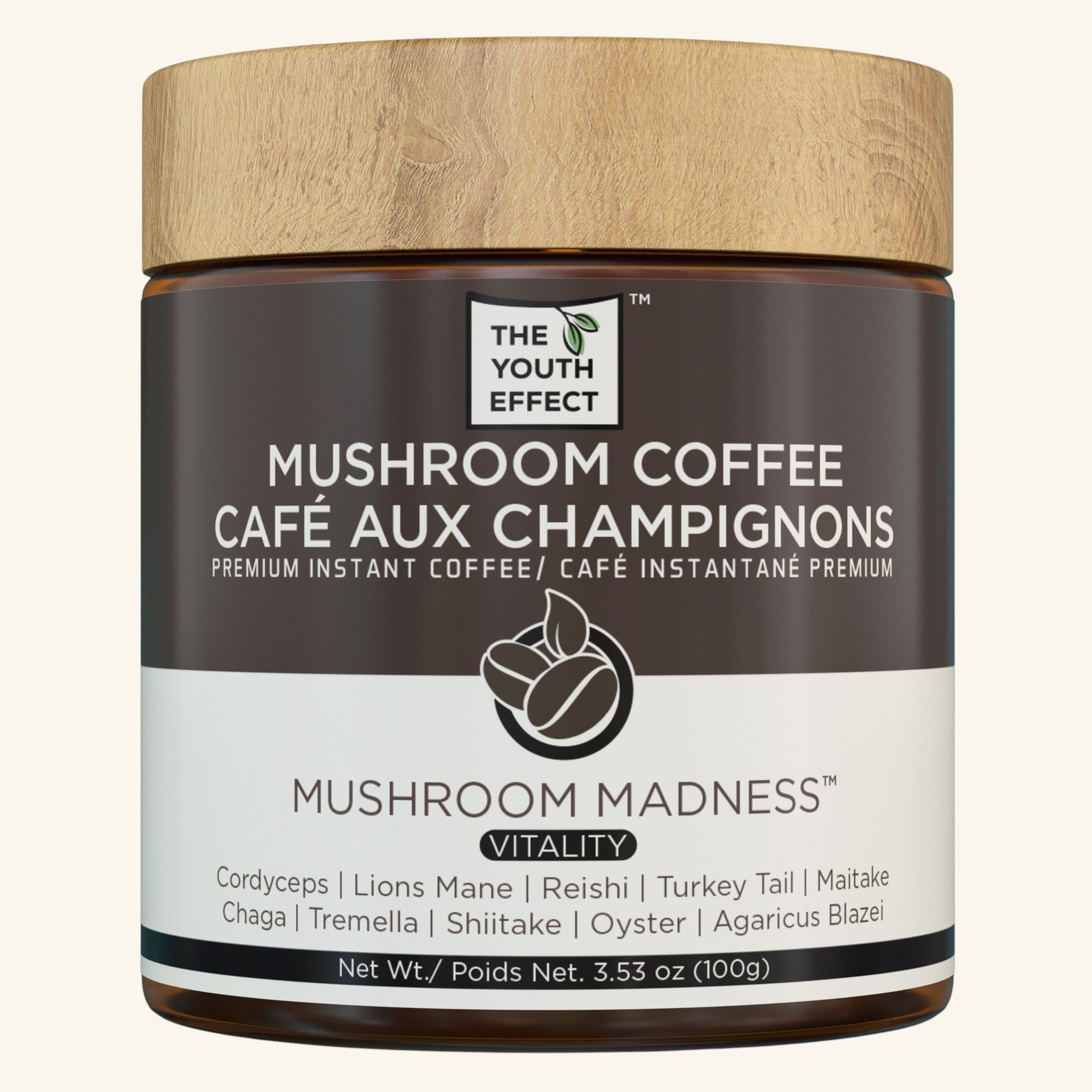 Premium Instant coffee powered by organic corydceps, lion’s mane, reishi, turkey tail, maitake, chaga, tremella, shiitake, oyster and agaricus blazei mushrooms. See results in as little as 7 days with focus that tastes amazingly delicious.